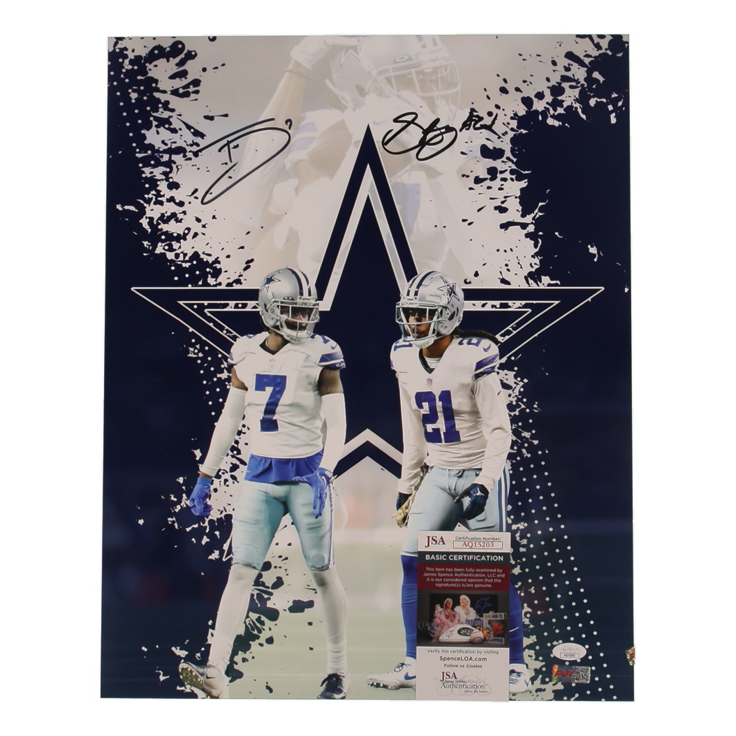 Photo measures 16" x 20" in size and has been hand-signed by Trevon Diggs and Stephon Gilmore (Dallas Cowboys).