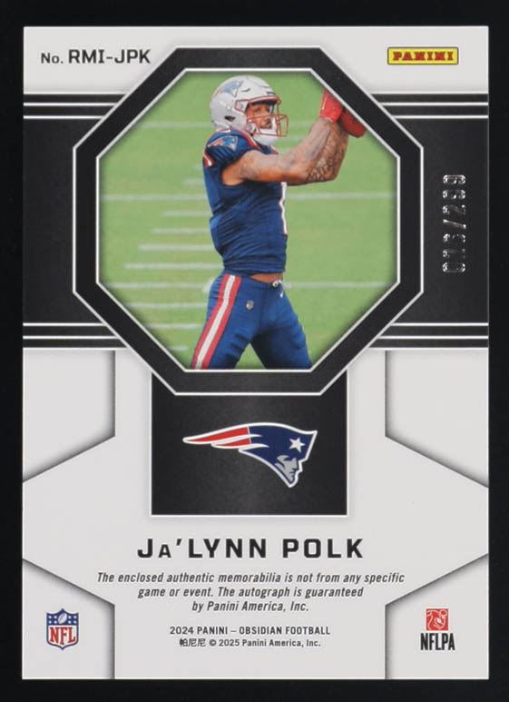 Ja'Lynn Polk 2024 Panini Obsidian Rookie Materials Ink #18 #026/299 RC