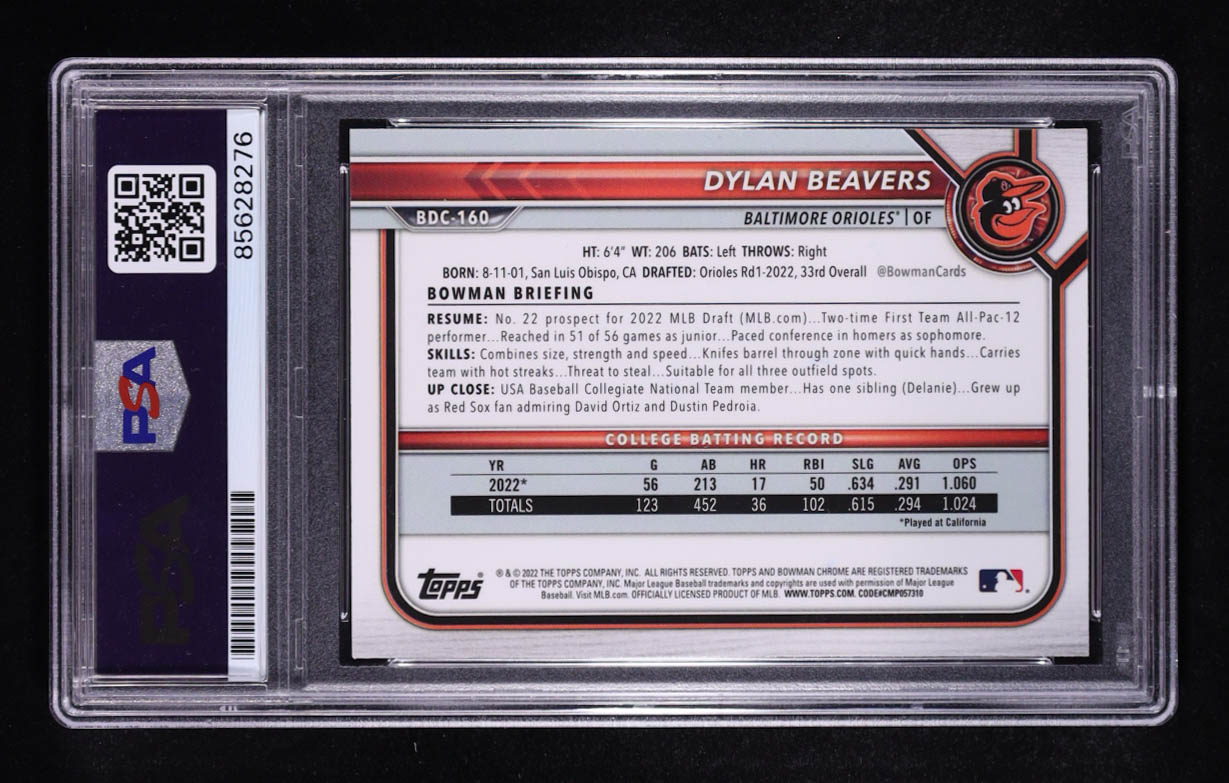Dylan Beavers Signed 2022 Bowman Chrome Prospect #BDC160 RC (PSA | Auto 9)