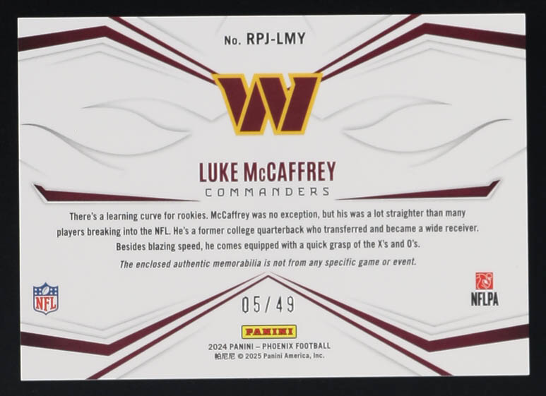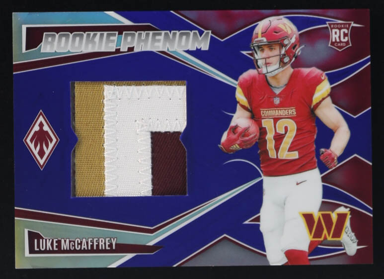 Luke McCaffrey 2024 Panini Phoenix Rookie Phenom Jerseys Blue #22 #05/49 RC