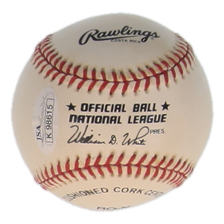 Rawlings Official Major League Baseball. Hand-signed by Warren Spahn (D. 2003, Milwaukee Braves, HOF). Please note, the baseball is naturally toned.