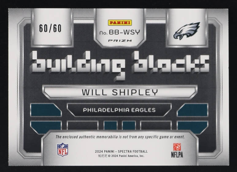 Will Shipley 2024 Panini Spectra Building Blocks Materials Neon Blue #28 #60/60 RC