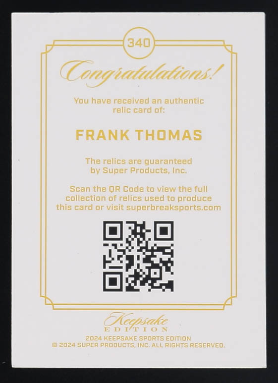 Frank Thomas 2024 Keepsake Edition Gem Relic #340 #65/99