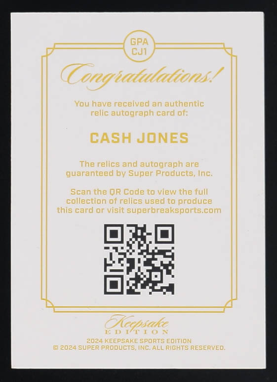 Cash Jones 2024 Keepsake Edition Gem Patch Autograph #GPACJ1 #27/99 RC