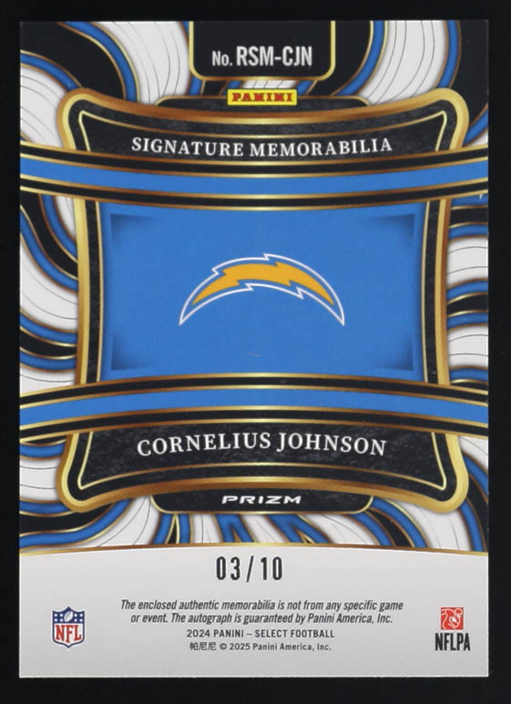 Cornelius Johnson 2024 Select Rookie Signature Memorabilia Prizm Gold Disco #33 #03/10 RC