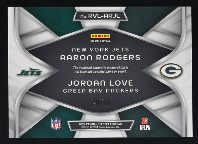 Aaron Rodgers / Jordan Love 2024 Panini Spectra Rivals Materials Hyper #3 #70/75