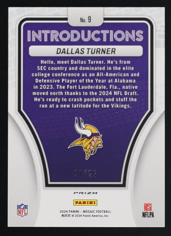 Dallas Turner 2024 Panini Mosaic Introductions Mosaic White #9 #21/25 RC