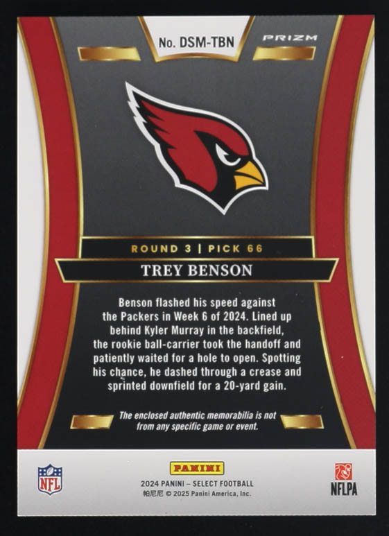 Trey Benson 2024 Select Draft Selections Memorabilia Prizm Red #22 RC