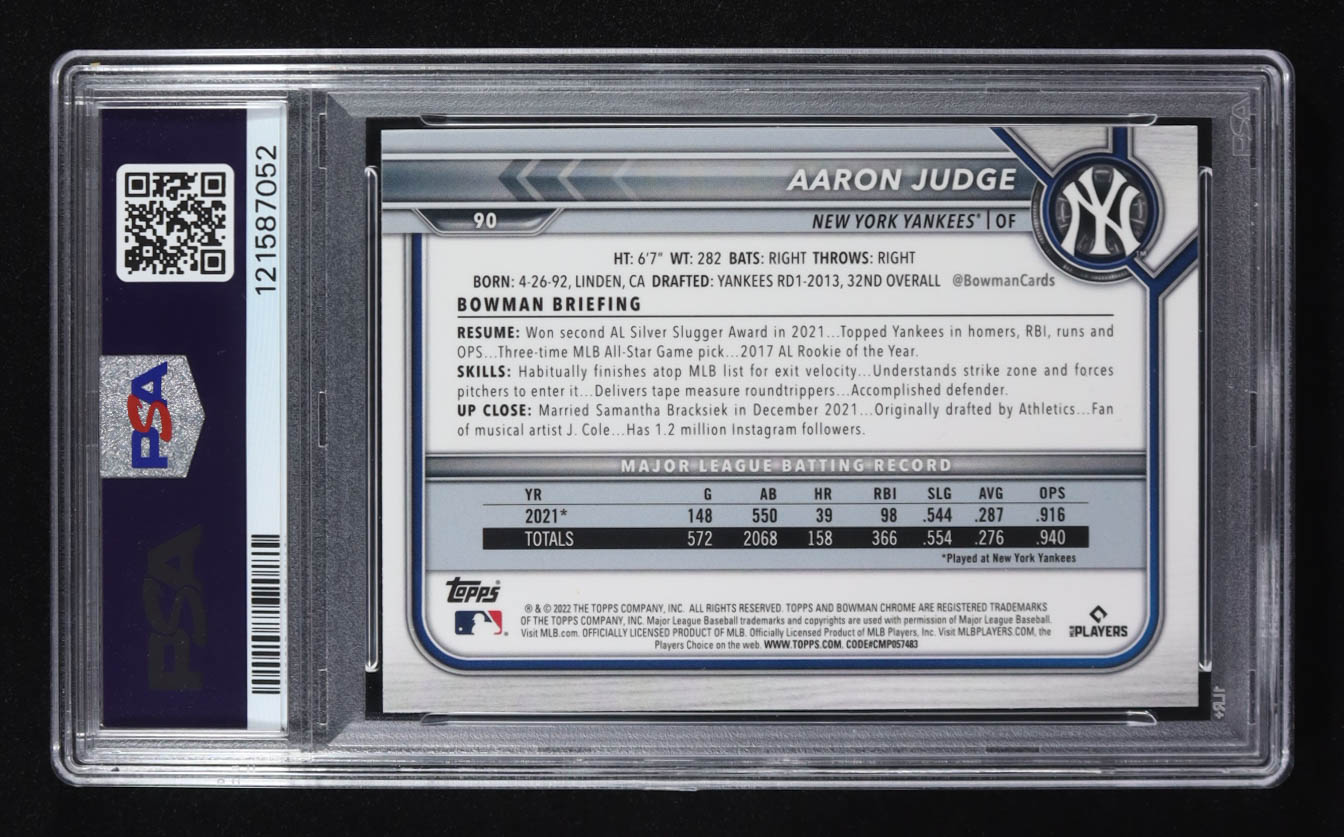 Aaron Judge 2022 Bowman Chrome Sapphire #90 (PSA 9)