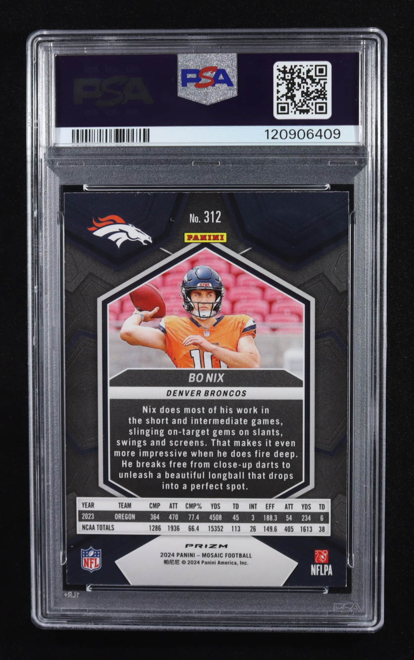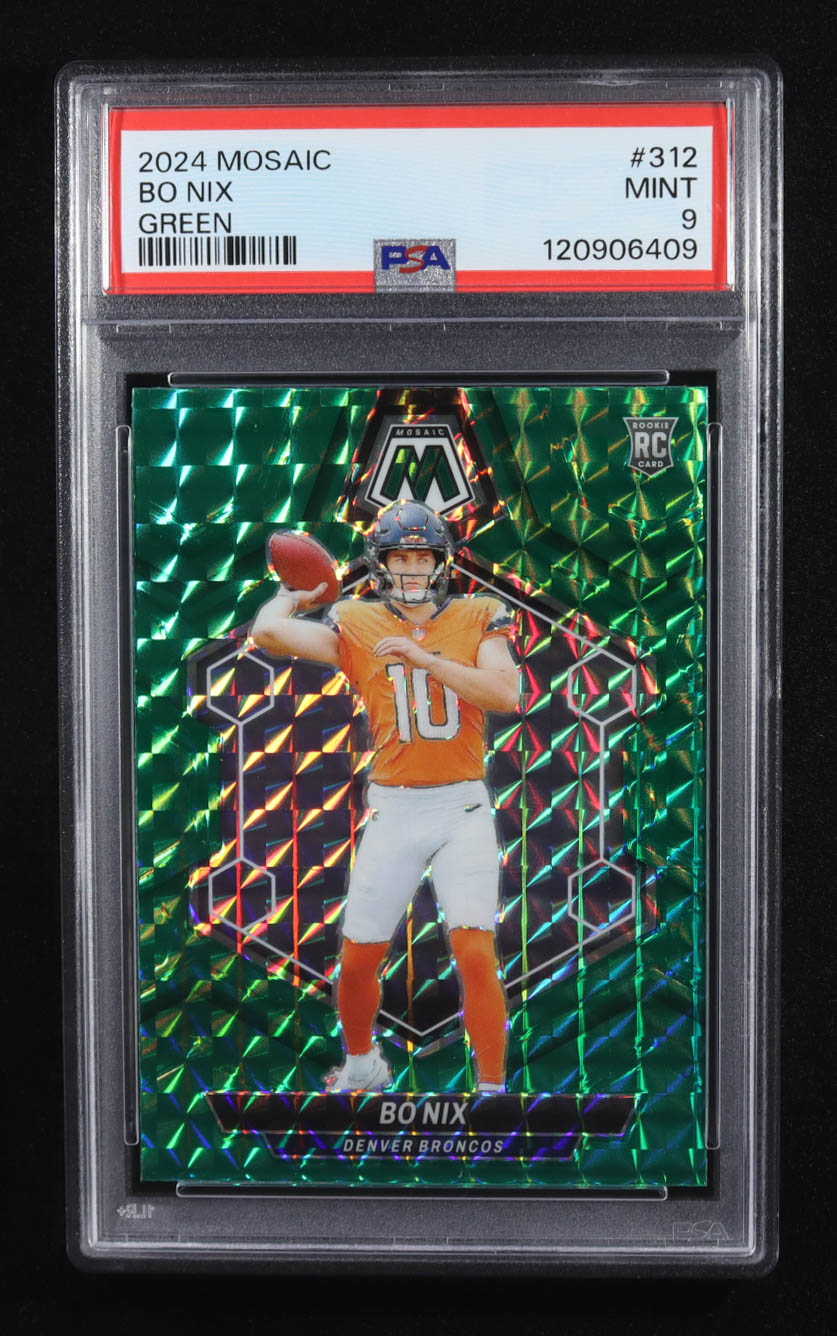 Bo Nix 2024 Panini Mosaic Mosaic Green #312 RC (PSA 9)