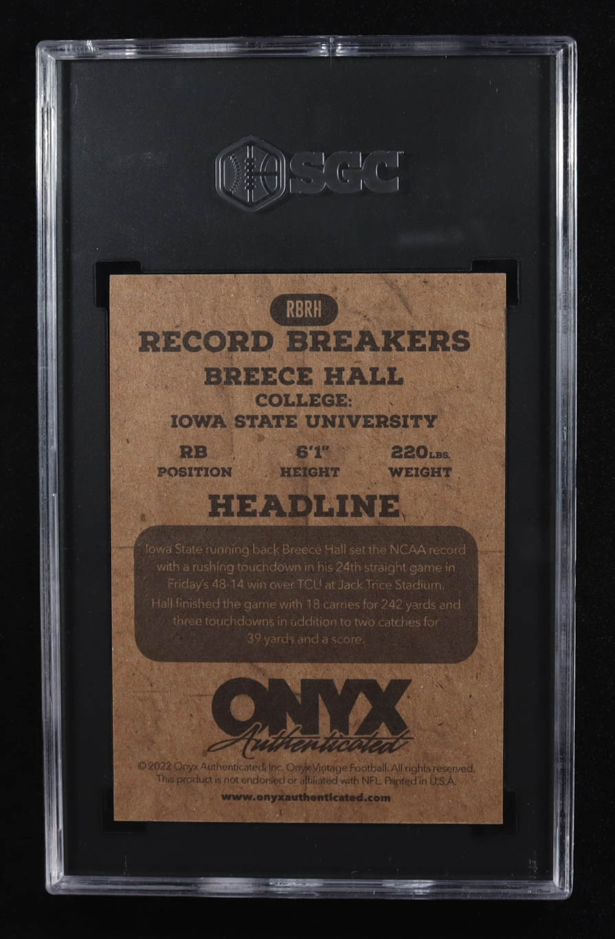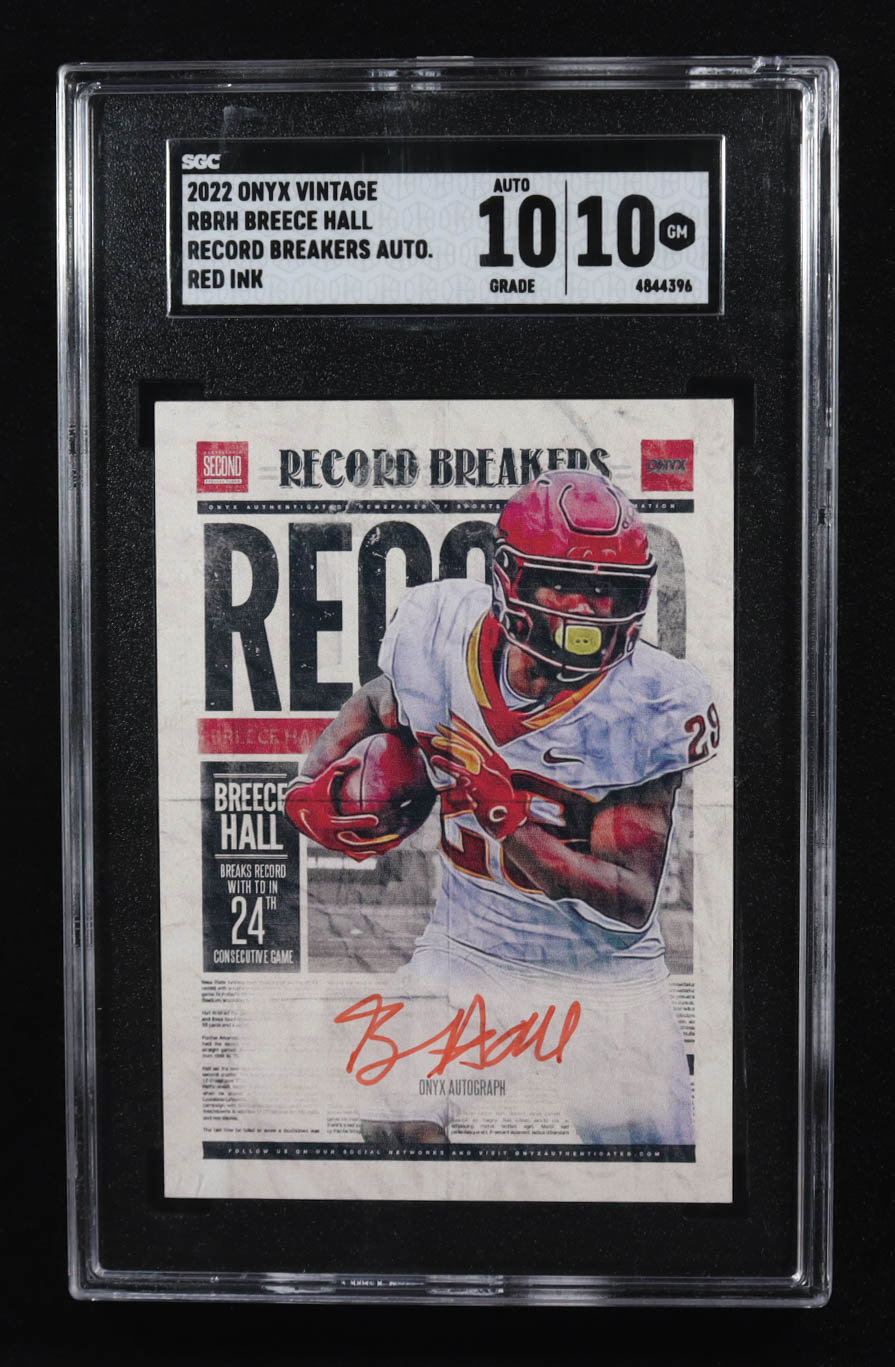 Breece Hall 2022 Onyx Vintage Record Breakers Autograph Red Ink #RBRH RC (SGC 10 | Auto 10)