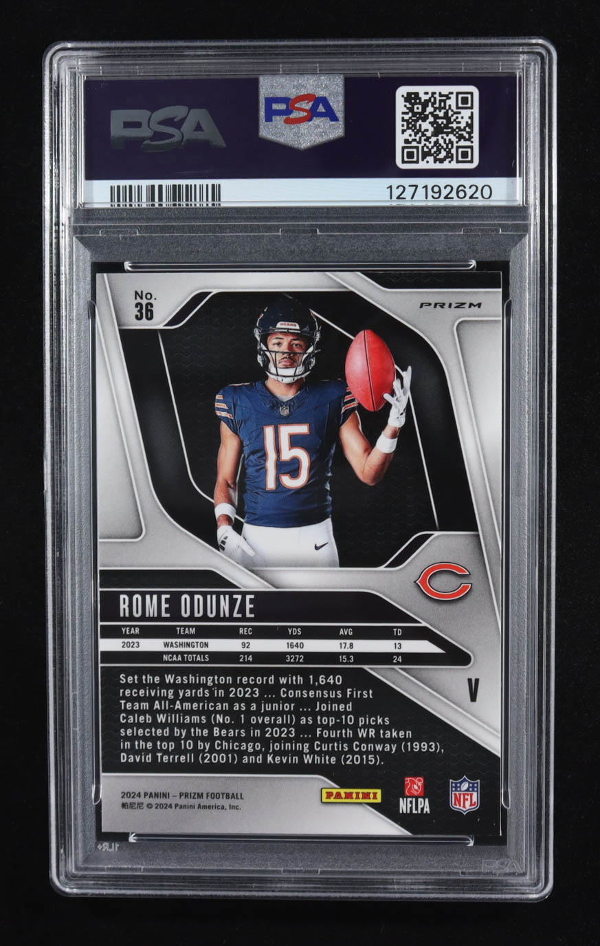 Rome Odunze 2024 Panini Prizm Rookie Variations Prizms Silver #36 RC (PSA 8)