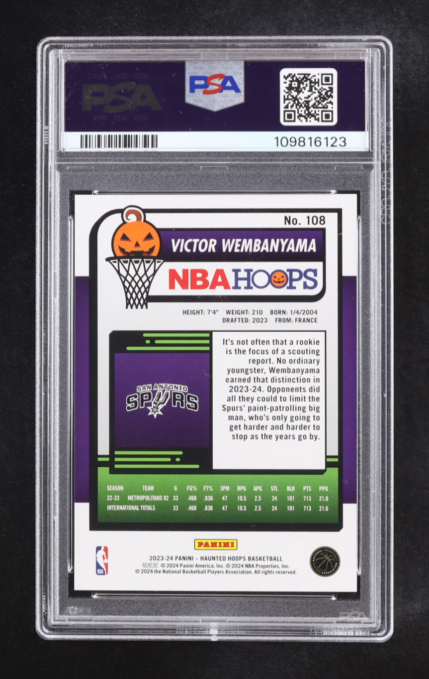 Victor Wembanyama 2023-24 Hoops Haunted Hoops Orange #108 RC (PSA 10)