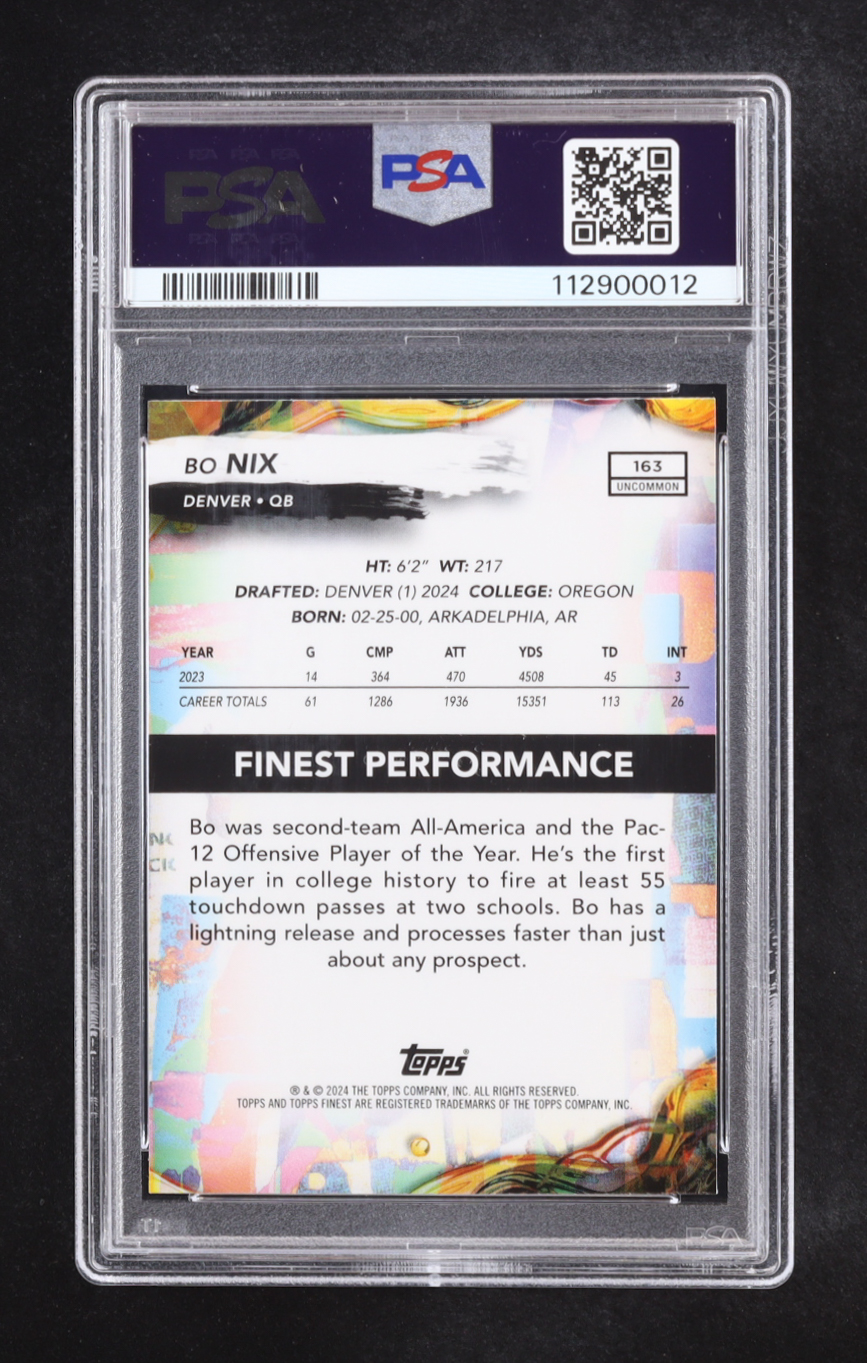 Bo Nix 2024 Finest Purple Refractors #163 RC 161/200 (PSA 9)
