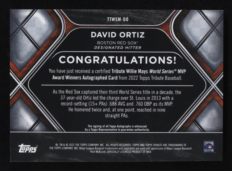 David Ortiz 2022 Topps Tribute to World Series MVPs Autographs Red #TTWSMDO #5/10