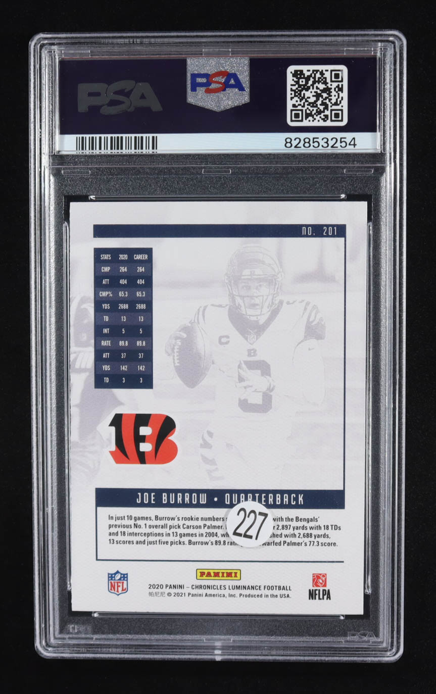 Joe Burrow 2020 Panini Luminance Pink #201 RC / Chronicles (PSA 10)