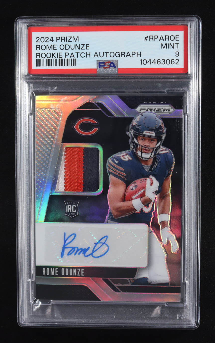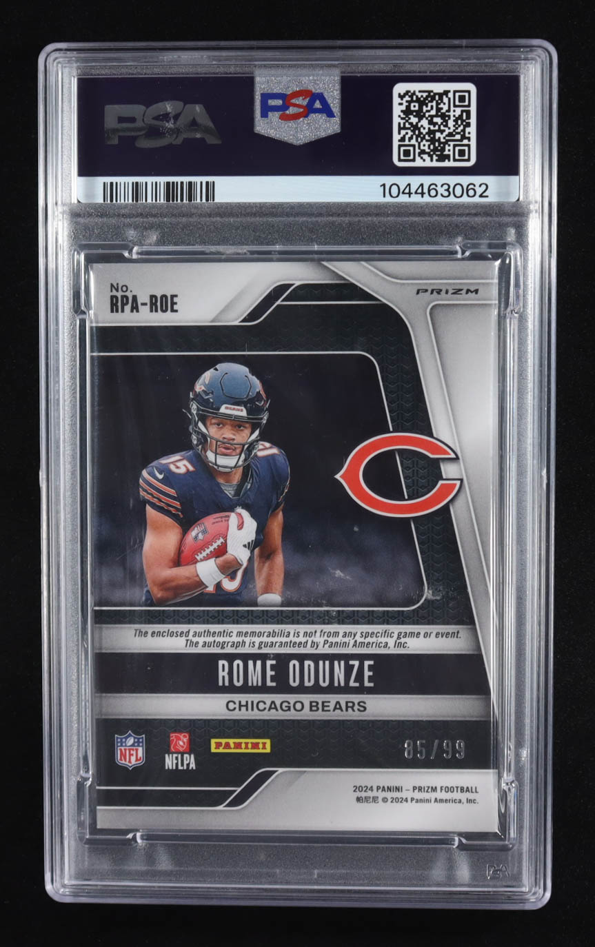 Rome Odunze 2024 Panini Prizm Rookie Patch Autographs Prizm Silver #4 RC #85/99 (PSA 9)