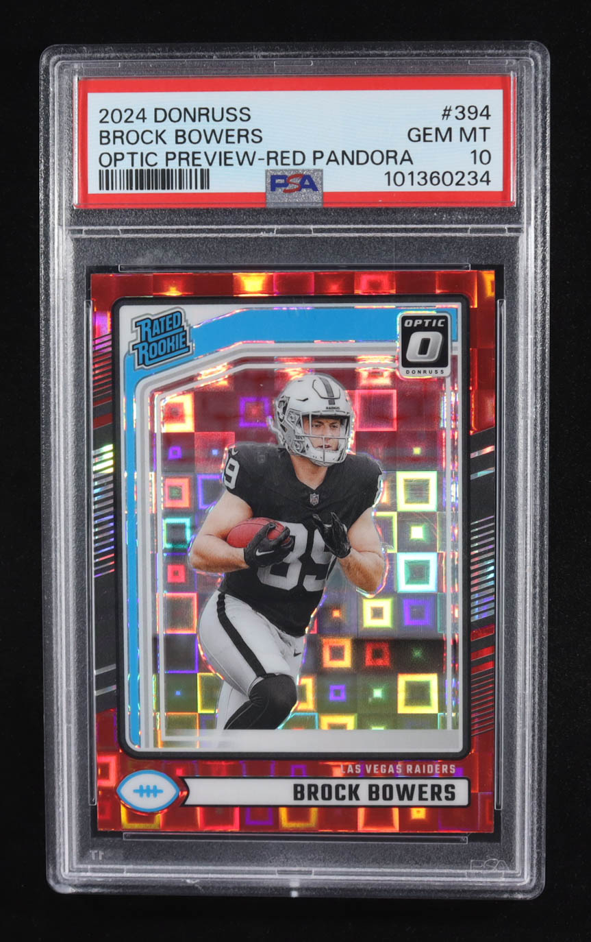 Brock Bowers 2024 Donruss Optic Rated Rookies Preview Red Pandora #394 RC (PSA 10)