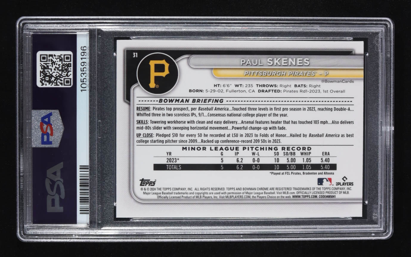 Paul Skenes 2024 Bowman Chrome #31 RC (PSA 9)