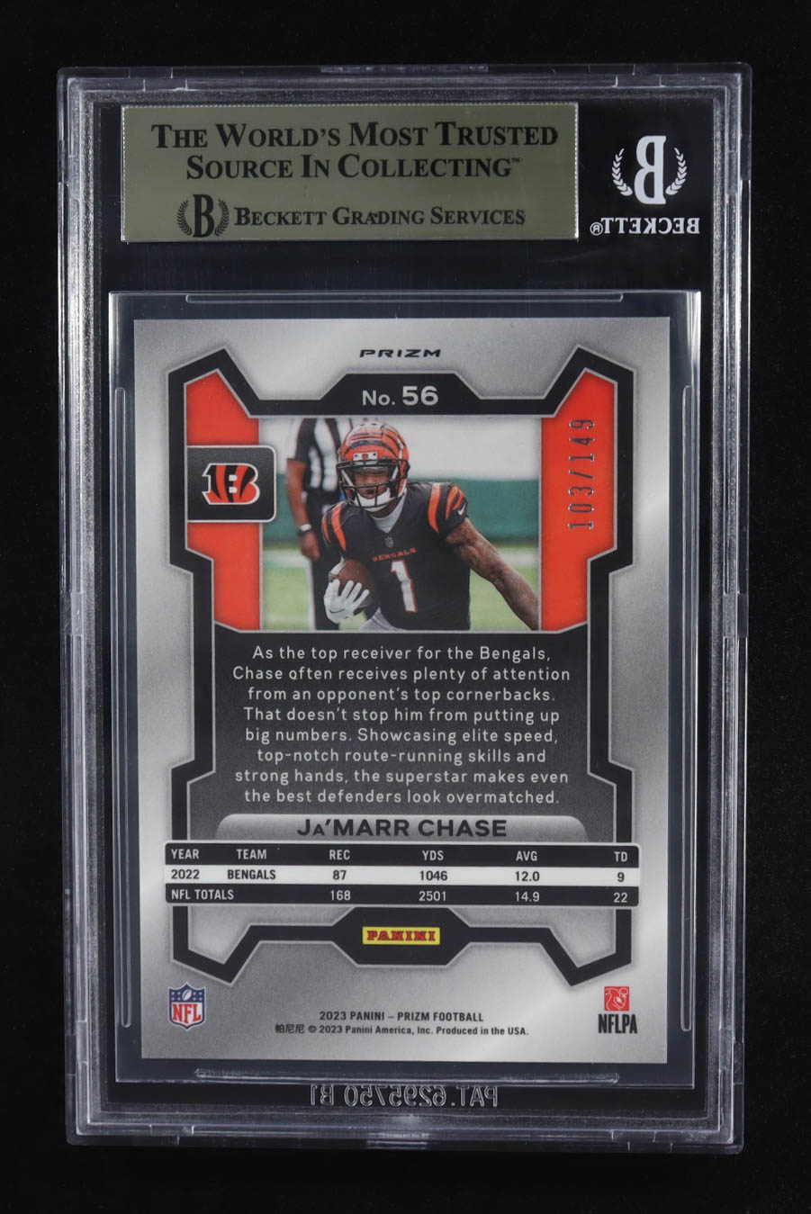 Ja'Marr Chase 2023 Panini Prizm Prizms Red Wave #56 #103/149 (BGS 9.5)