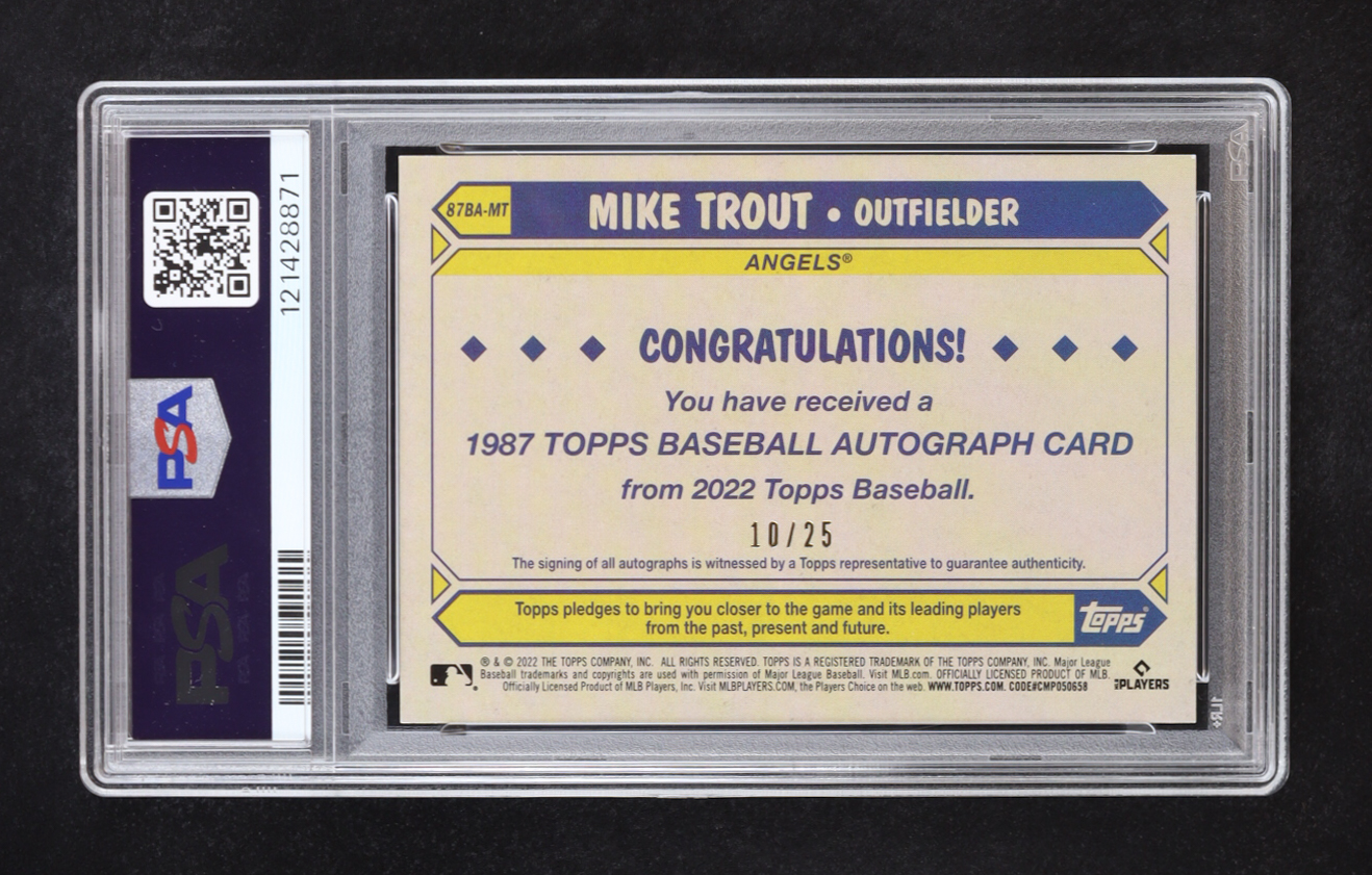 Mike Trout 2020 Topps '87 Topps Baseball Autographs Gold #87BAMT #10/25 (PSA | Auto Grade 10)