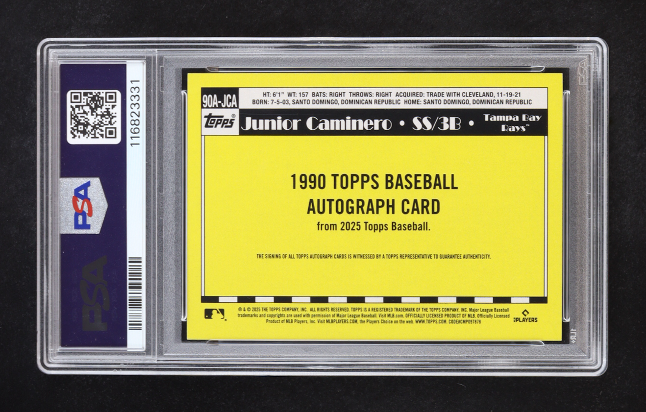 Junior Caminero 2025 Topps '90 Topps Autographs #90AJCA (PSA 8.5)