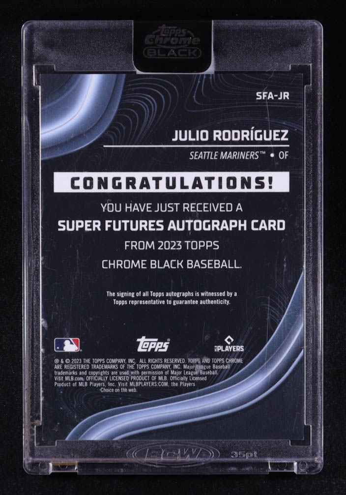 Julio Rodriguez 2023 Topps Chrome Black Super Futures Autographs Gold Refractors #SFAJR #01/50