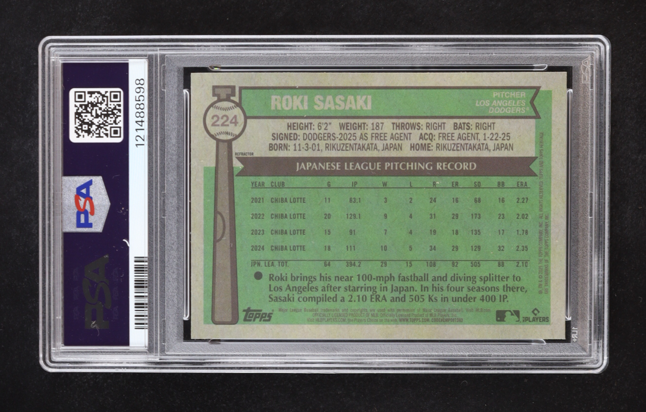 Roki Sasaki 2025 Topps Heritage Chrome Refractor #224 RC (PSA 9)