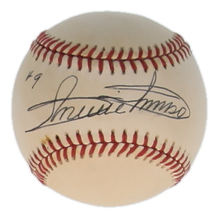 Rawlings Official American League Baseball. Hand-signed by Minnie Minoso (D. 2015, Chicago White Sox, HOF). Please note, the baseball is naturally toned and stained.