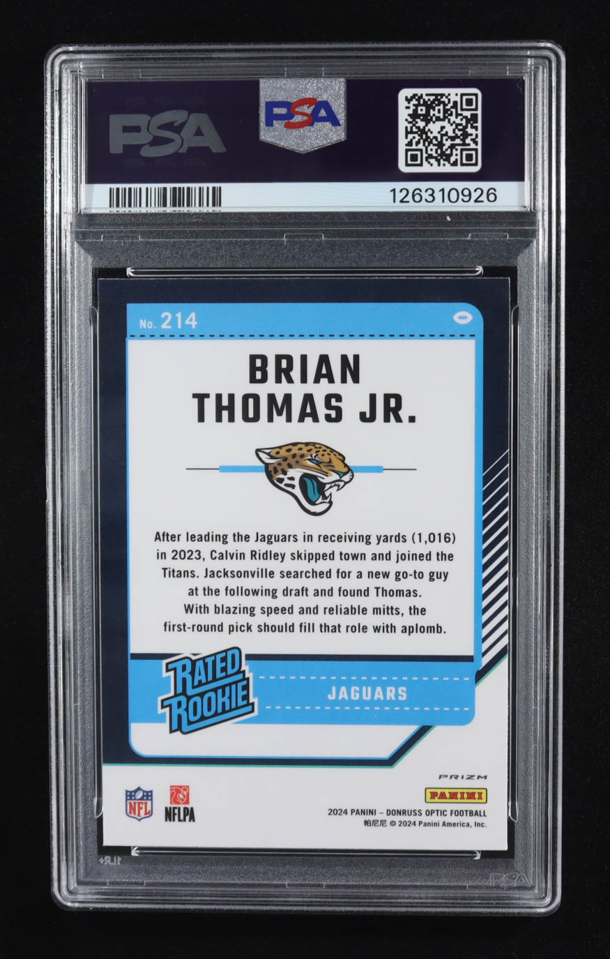 Brian Thomas Jr. 2024 Donruss Optic Blue Glitter #214 RR RC (PSA 10)