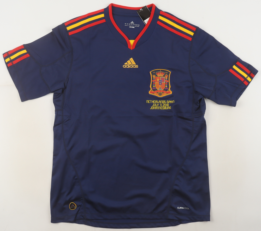 Adidas authentic jersey with everything pressed on, size XL. Hand-signed by David Villa (Spain National Football Team).