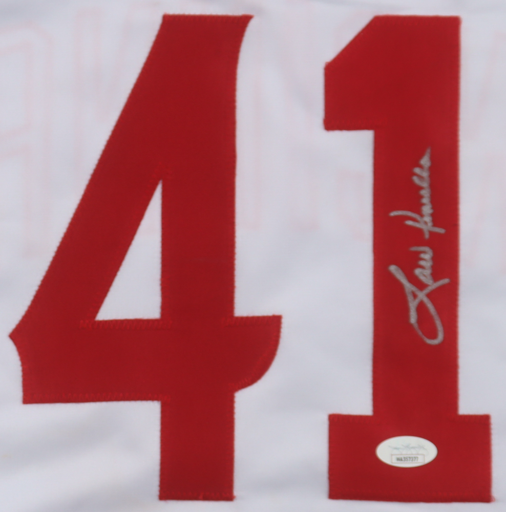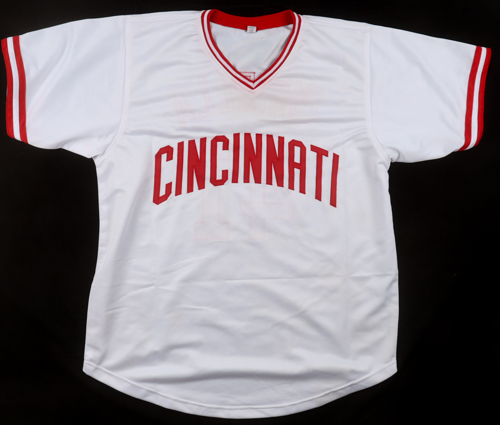Custom jersey with everything sewn on, size XL. Hand-signed by Lou Piniella.
