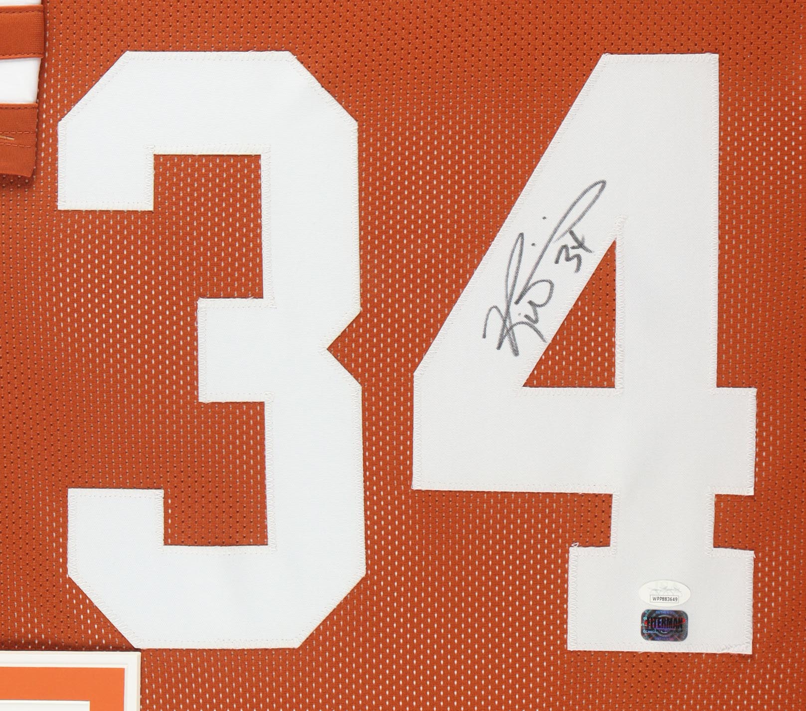Custom frame measures approximately 34" x 42" in size and features a jersey that has been hand-signed by Ricky Williams.