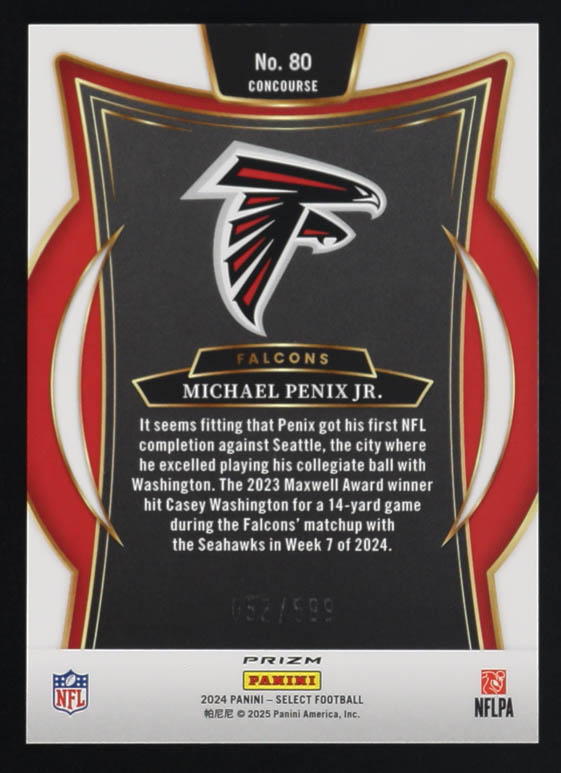Michael Penix Jr. 2024 Select Prizm Neon Green Shock #80 #052/599 RC
