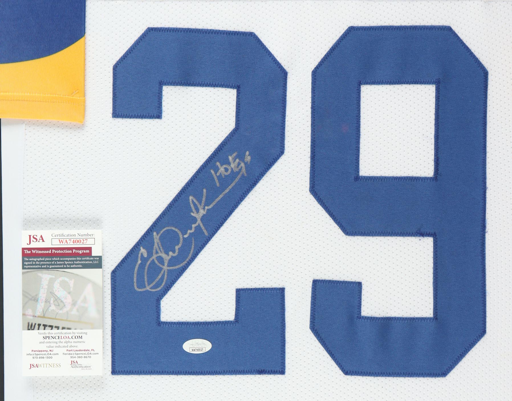 Custom frame measures approximately 34" x 42" in size and features a jersey that has been hand-signed by Eric Dickerson (HOF).