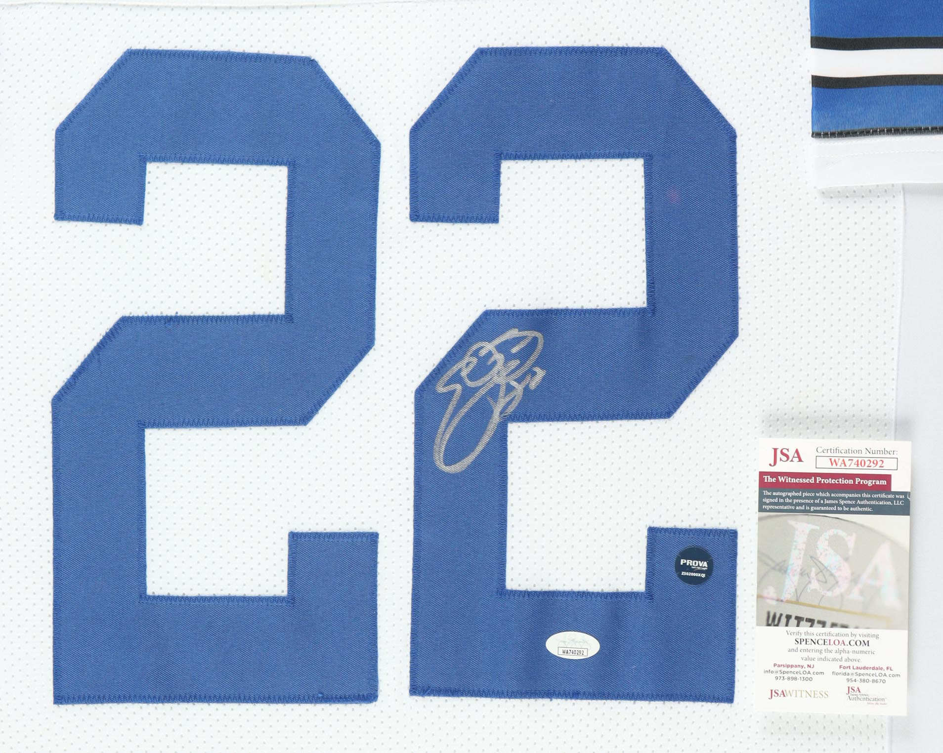 Custom frame measures approximately 34" x 42" in size and features a jersey that has been hand-signed by Emmitt Smith (HOF).