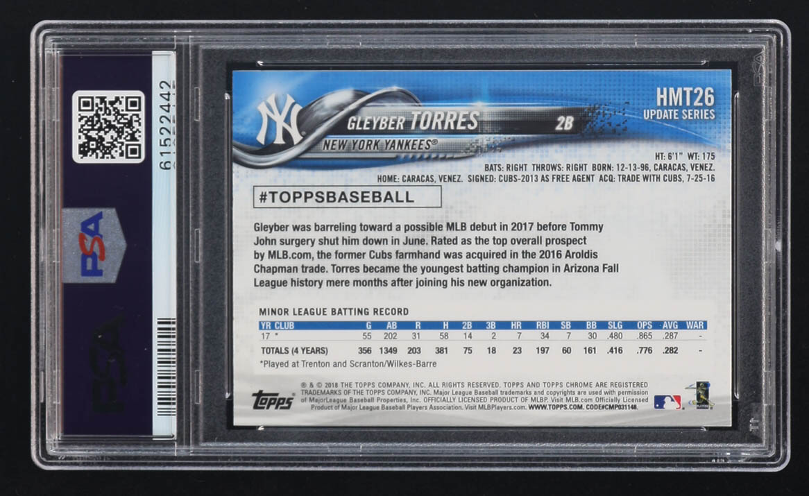 Gleyber Torres 2018 Topps Chrome Update #HMT26 RC (PSA 9)