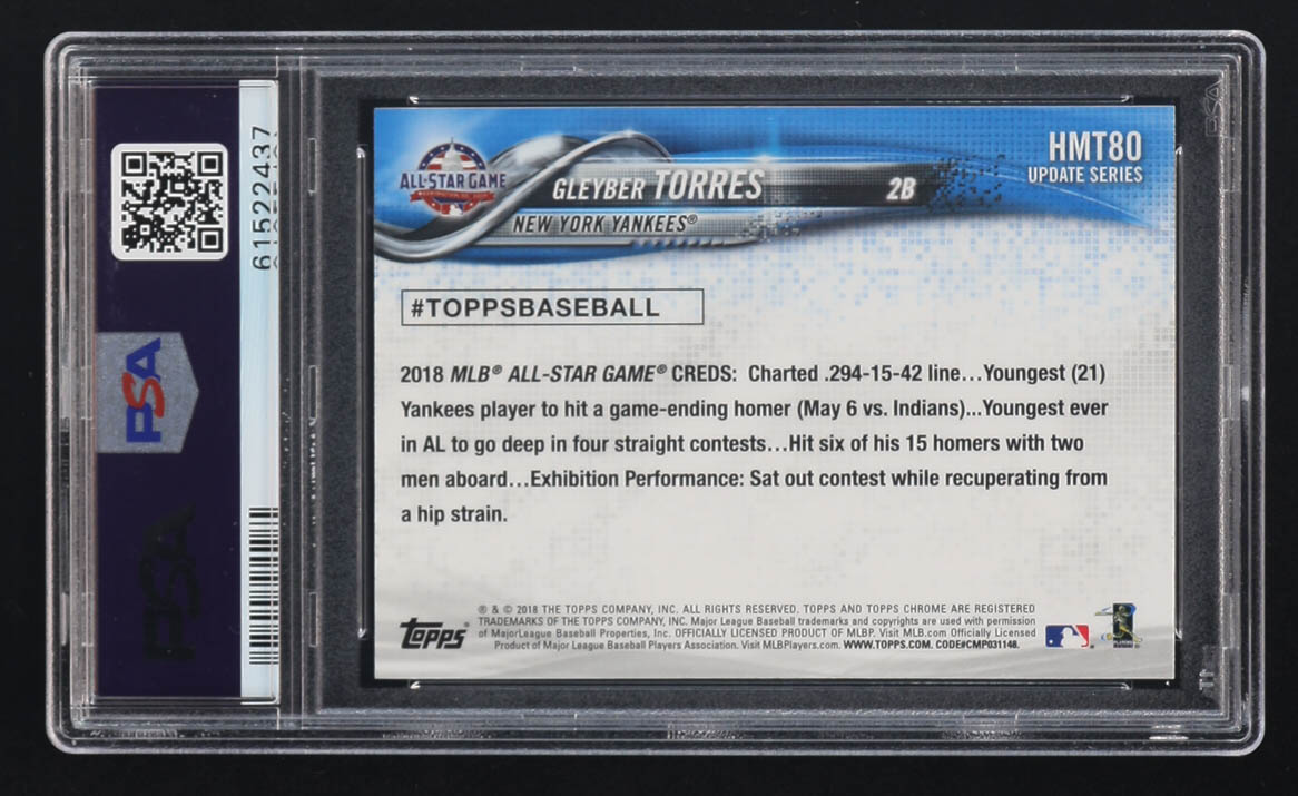 Gleyber Torres 2018 Topps Chrome Update #HMT80 RC (PSA 9)