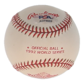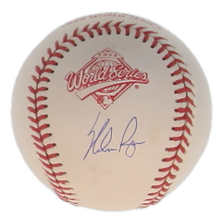 Rawlings Official 1992 World Series Logo Baseball. Hand-signed by Nolan Ryan (Texas Rangers, HOF).