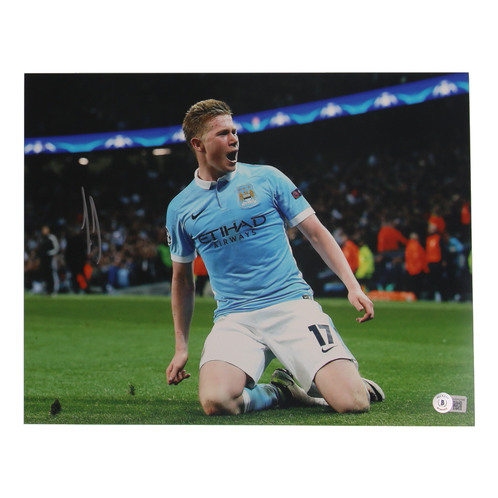 Photo measures 11" x 14" in size and has been hand-signed by Kevin De Bruyne (Manchester City F.C.).