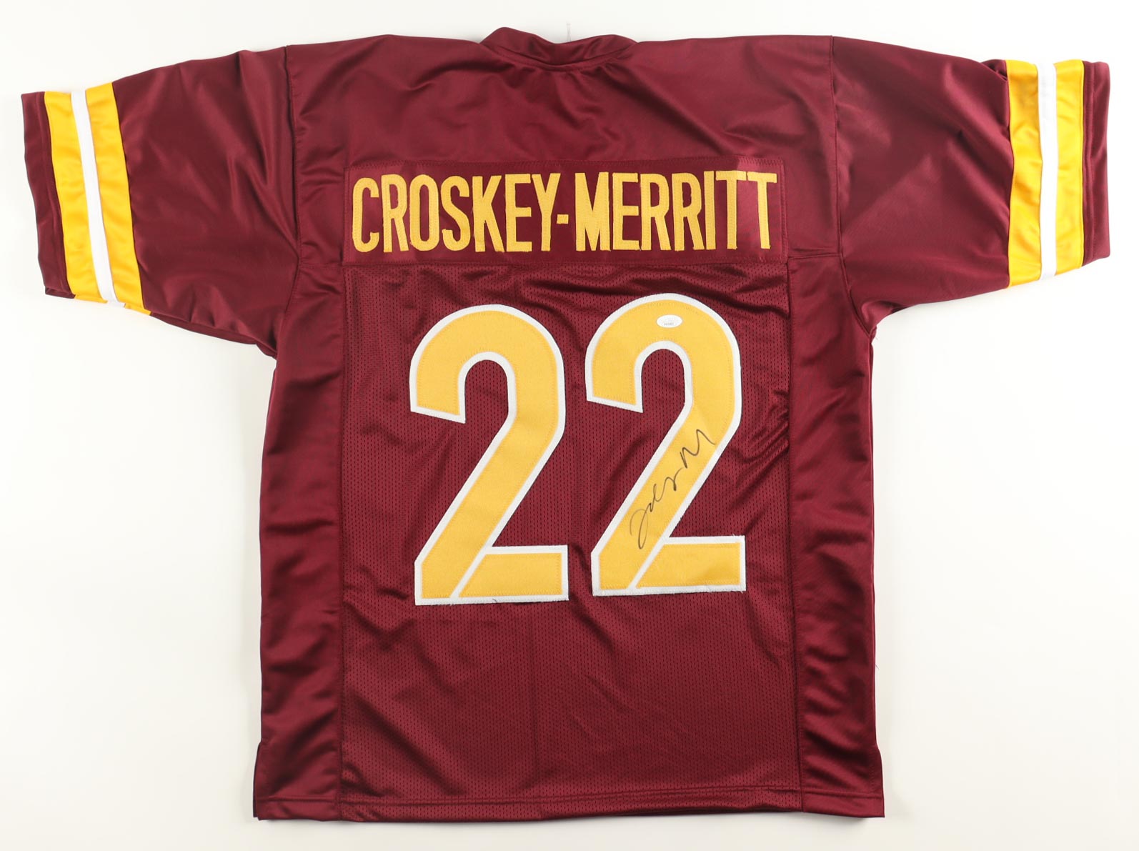 Custom jersey with everything sewn on, size XL. Hand-signed by Jacory Croskey-Merritt.
