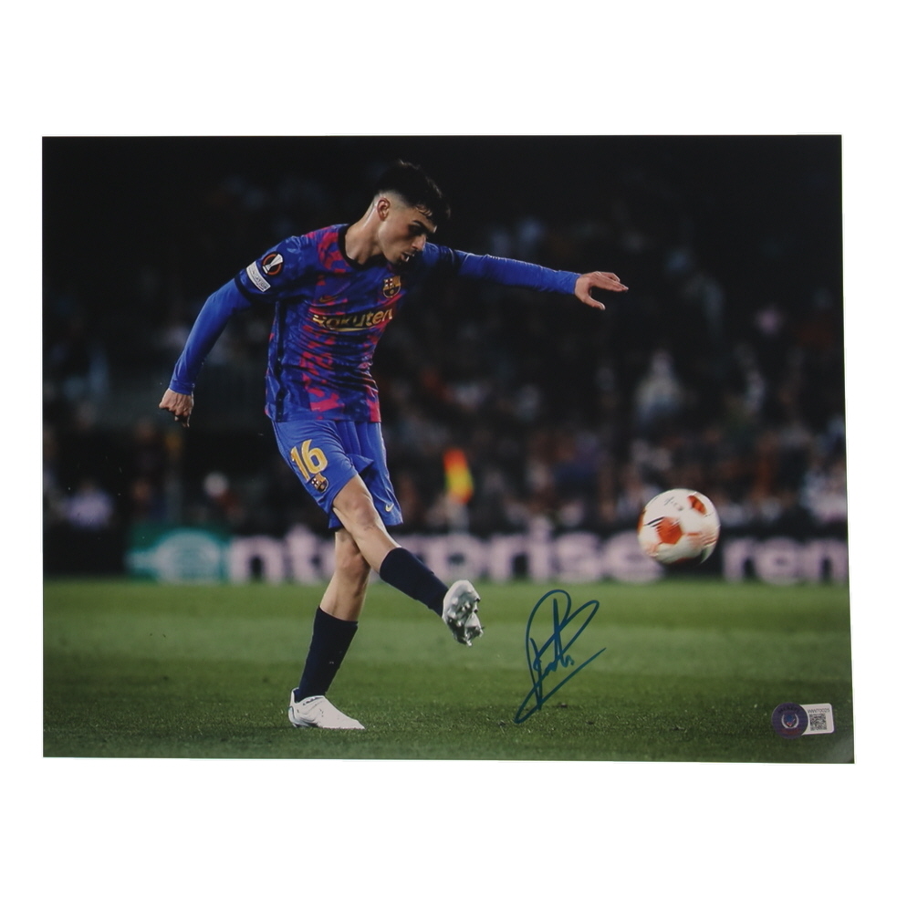 Photo measures 11" x 14" in size and has been hand-signed by Pedri (FC Barcelona).