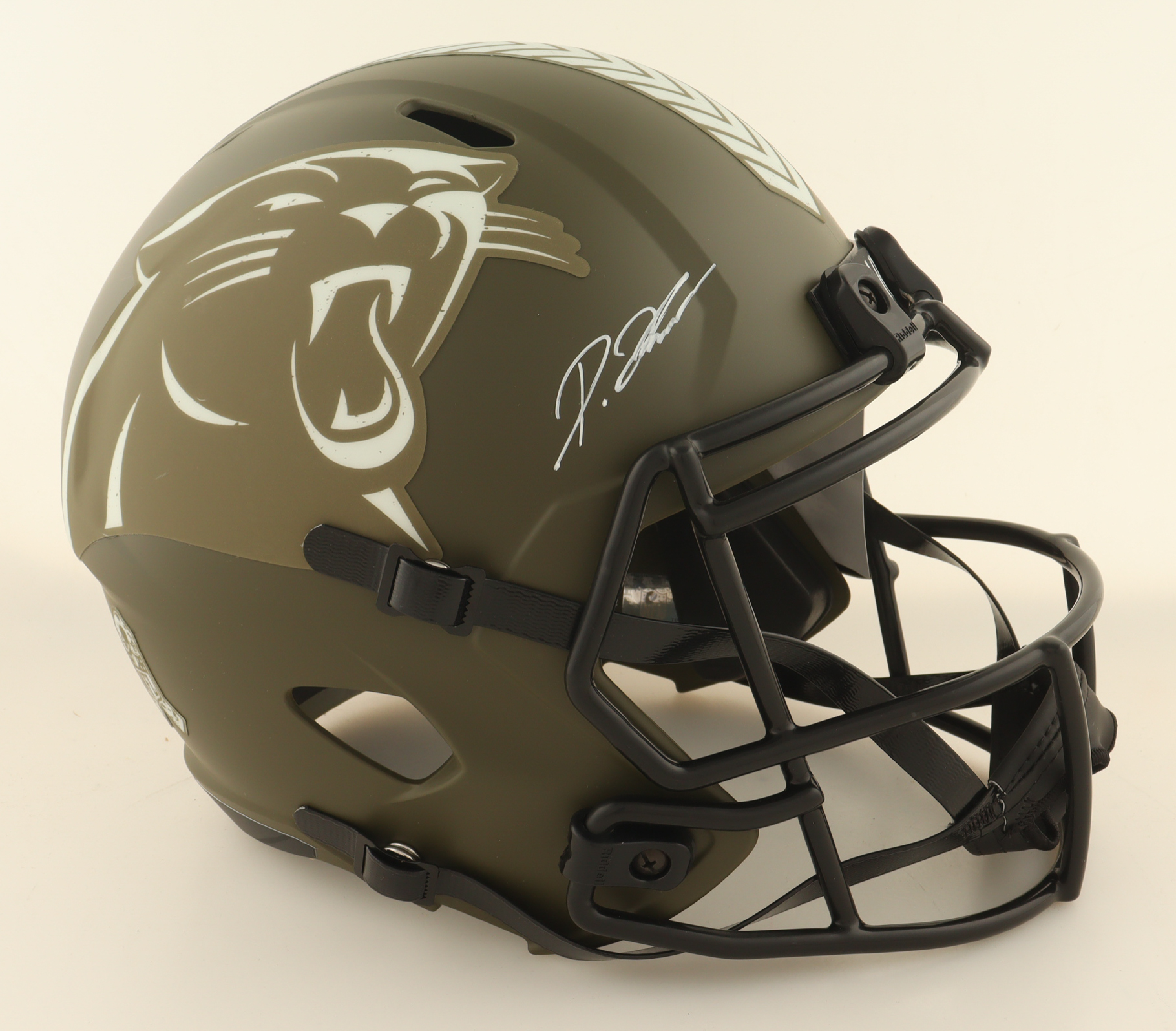 Riddell Carolina Panthers full-size replica Salute to Service Alternate Speed helmet. Hand-signed by Diontae Johnson.