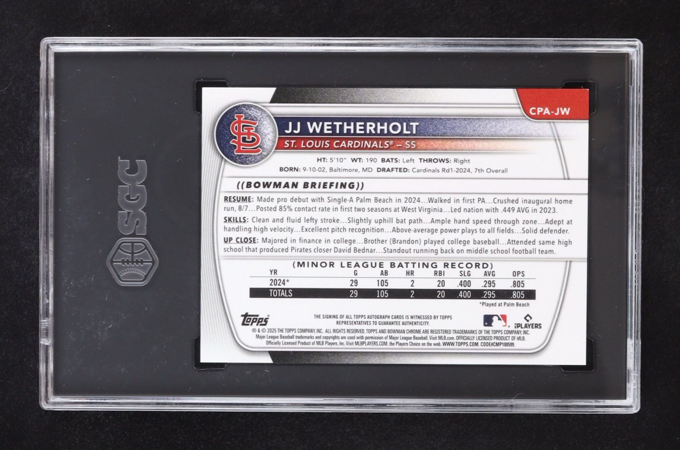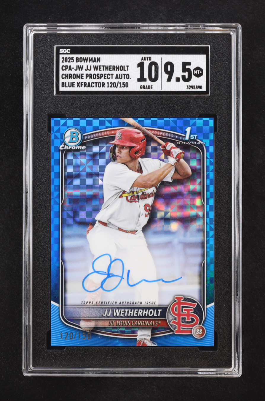 JJ Wetherholt 2025 Bowman Chrome Prospect Autographs Blue X-fractor #CPAJW #120/150 RC (SGC 9.5 | Auto Grade 10)