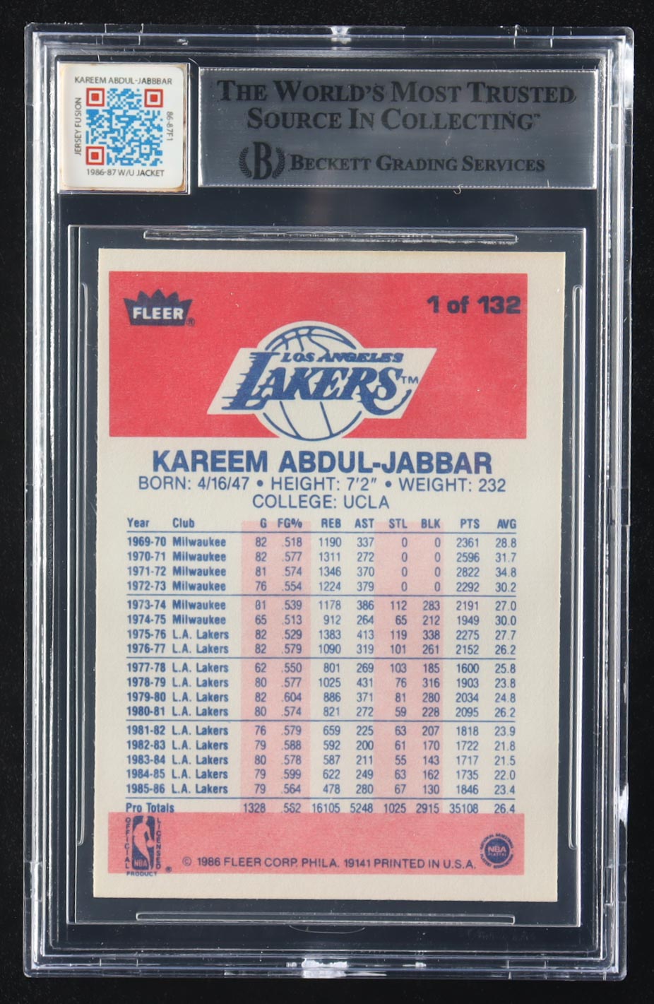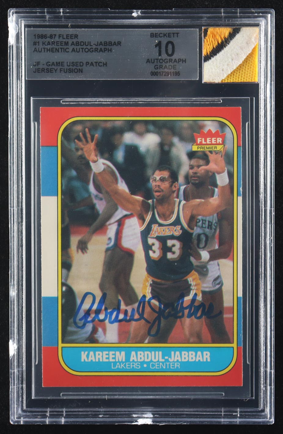 Kareem Abdul-Jabbar Signed 1986-87 Fleer #1 with Jersey Fusion Game-Used Patch (BGS | Auto Grade 10)