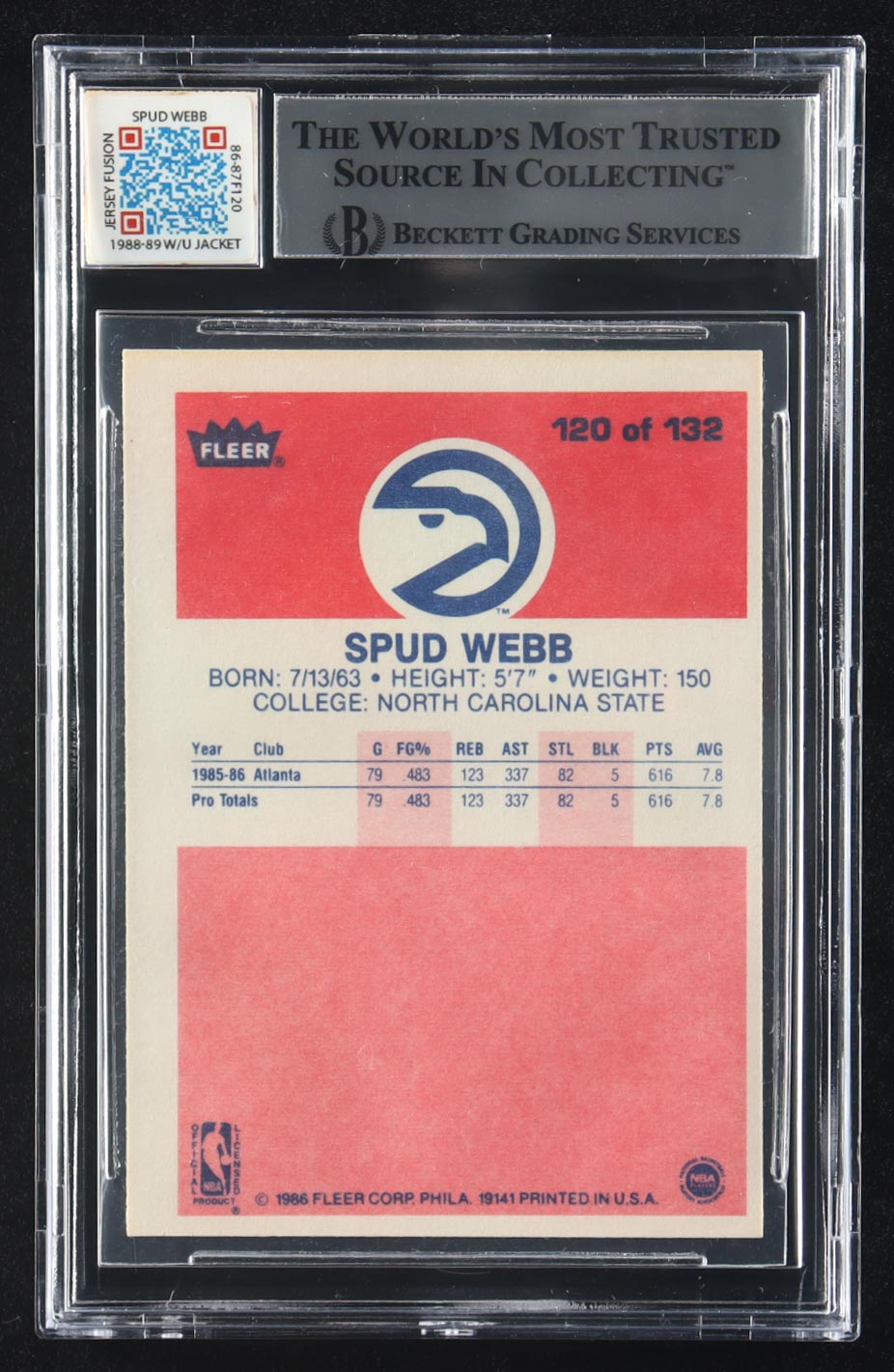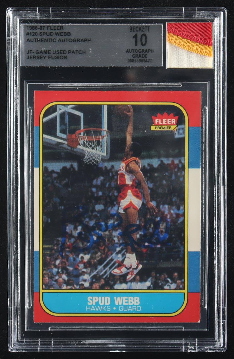 Spud Webb Signed 1986-87 Fleer #120 RC with Jersey Fusion Game-Used Patch (BGS | Auto Grade 10)