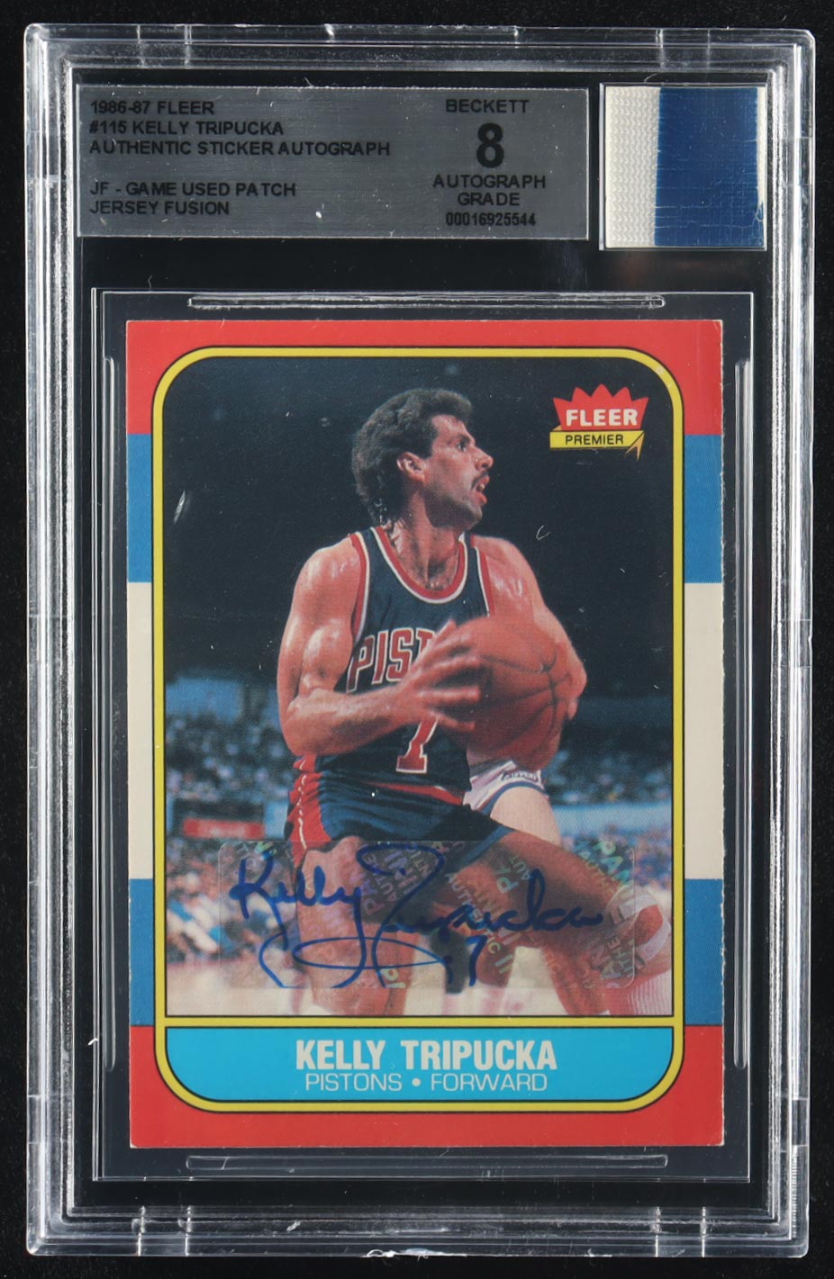 Kelly Tripucka Signed 1986-87 Fleer #115 RC with Game-Used Jersey Patch (BGS | Auto Grade 8)