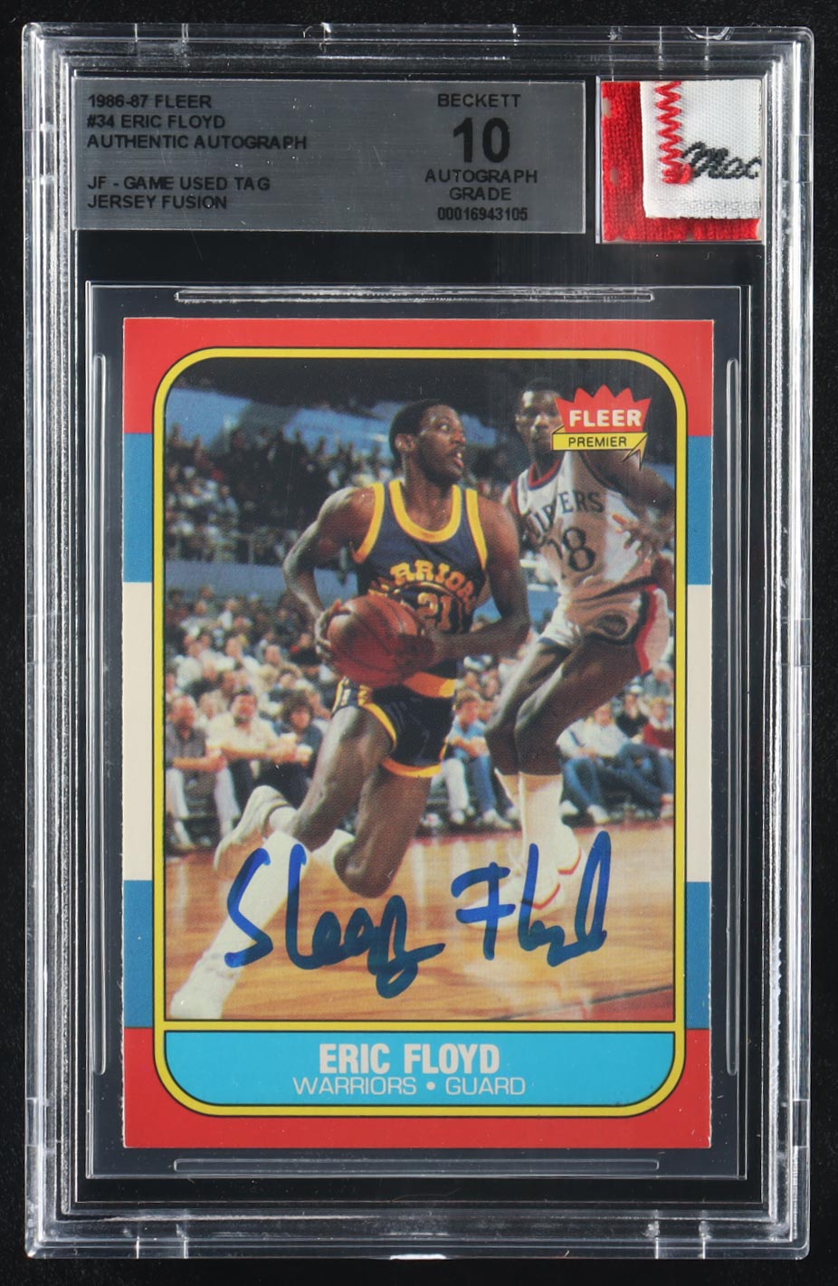 Sleepy Floyd Signed 1986-87 Fleer #34 RC with Game-Used Jersey Patch (BGS | Auto Grade 10)