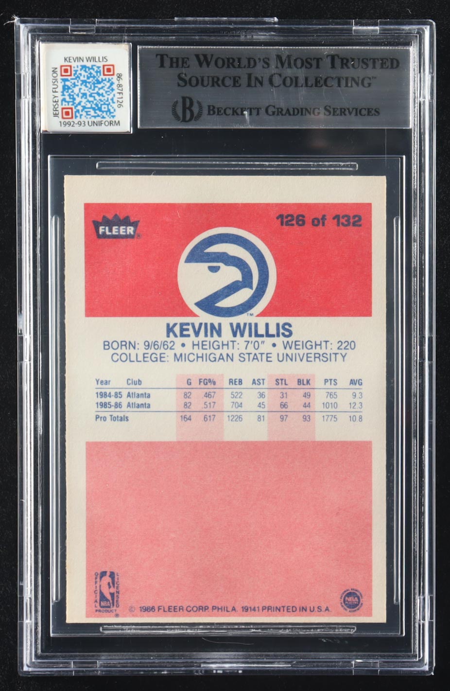 Kevin Willis 1986-87 Fleer #126 RC with Jersey Fusion Game-Used Patch (BGS Authentic)