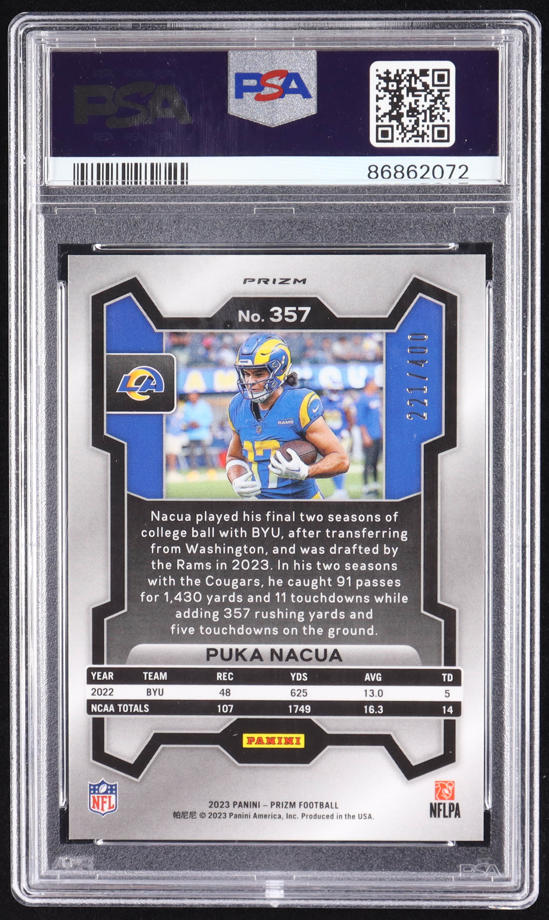 Puka Nacua 2023 Panini Prizm Prizms Pandora #357 #221/400 RC (PSA 10)